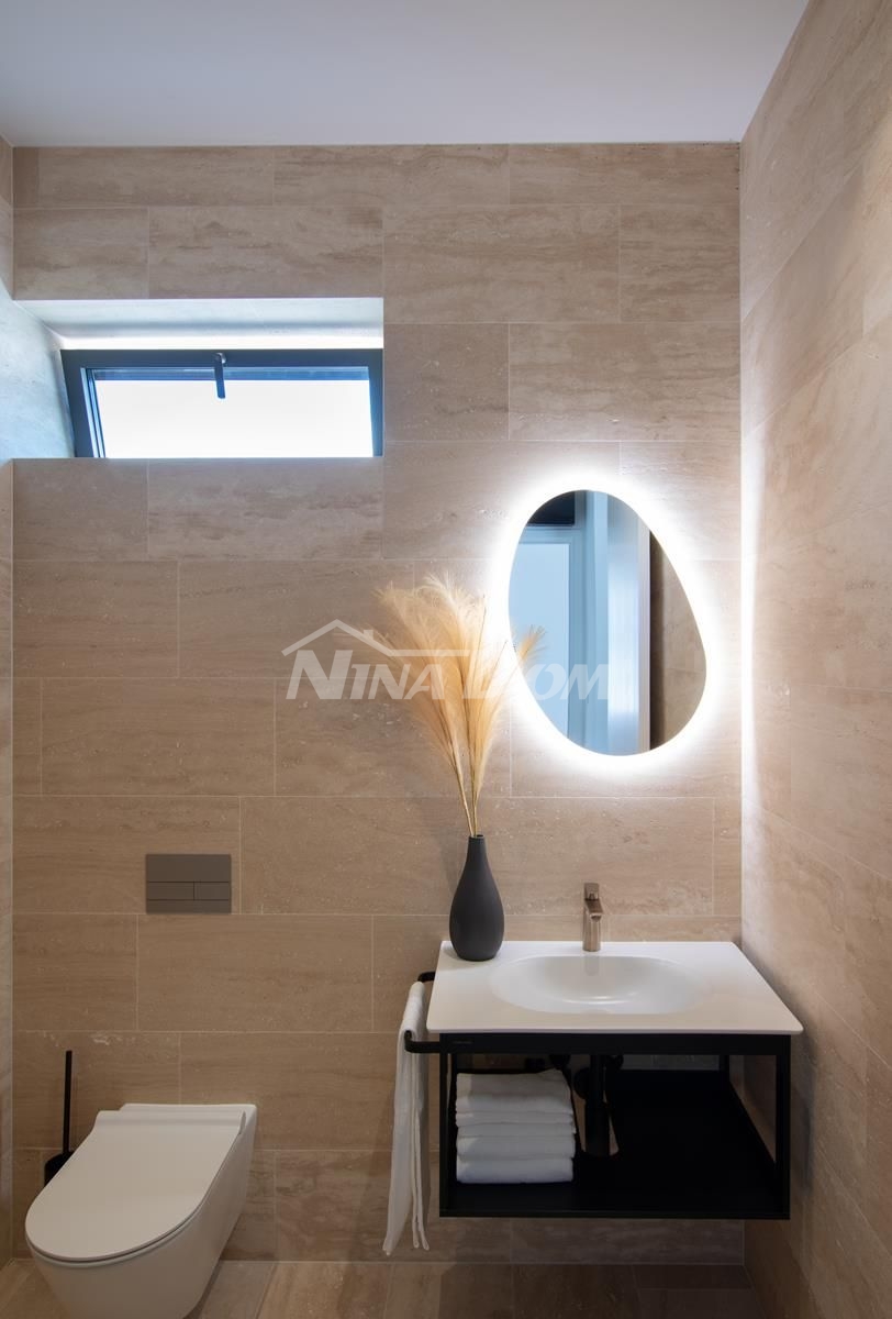 FOR SALE – LUXURY VILLA WITH POOL, 130 m² – UGRINIĆ, PAŠMAN ISLAND A modern luxury villa is for sale in the peaceful and attractive village of Ugrinić on the island of Pašman, ideal for enjoying the Mediterranean lifestyle. The property was built in 2024 and stands out for its functional layout, contemporary design and top quality construction. The total net usable area of the villa is 130 m², while the indoor living space is 103 m². The land on which it was built is 542 m2. Layout and content 3 spacious bedrooms 2 modern bathrooms laundry room spacious living room with kitchen and dining room (panoramic view) exit to the terrace The outdoor area includes a terrace with a swimming pool, perfect for relaxing and enjoying the sun, peace and Mediterranean atmosphere. Additional amenities 2 private parking spaces basement of approximately 15 m², ideal for storage or additional space Construction quality The villa is built on a concrete slab with top-notch waterproofing and thermal insulation. The load-bearing walls are made of reinforced concrete, the partition walls are made of brick. The facade is covered with natural travertine stone in combination with a STO silicate facade, which gives the building a modern and elegant look. The roof structure consists of waterproofing, thermal insulation, screed and a final layer of river stone. Interior and equipment Internal walls treated with cement plaster, smoothed and painted Floors covered with natural travertine stone, coordinated with the terrace and facade Top-quality aluminum joinery Cortizo - Cor Vision Plus The villa is equipped with appliances and equipment from renowned manufacturers: Modulnova, Franke, Barazza, Varaschin, Flos, Midj, San Giacomo, Flexteam, Catalano, Miele, Siemens Studioline, Bora, Sony, Hans Grohe, Keuco, Mitsubishi Klima. Conclusion This luxury villa in Ugrinić represents the perfect combination of quality, elegance and an excellent location. It is ideal as a family home, holiday home or investment for tourist rental. Located in a peaceful environment, close to the sea and all necessary amenities, it offers maximum comfort and privacy. A rare opportunity to purchase a top-quality property on the island of Pašman.