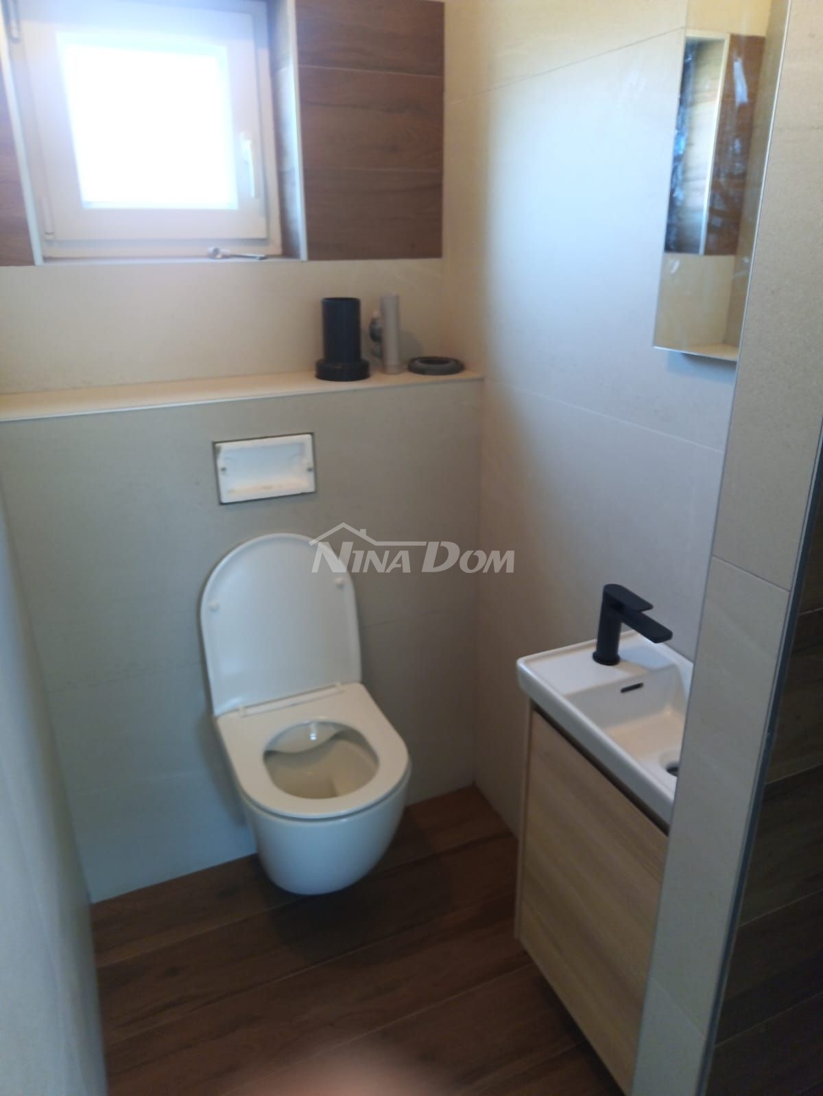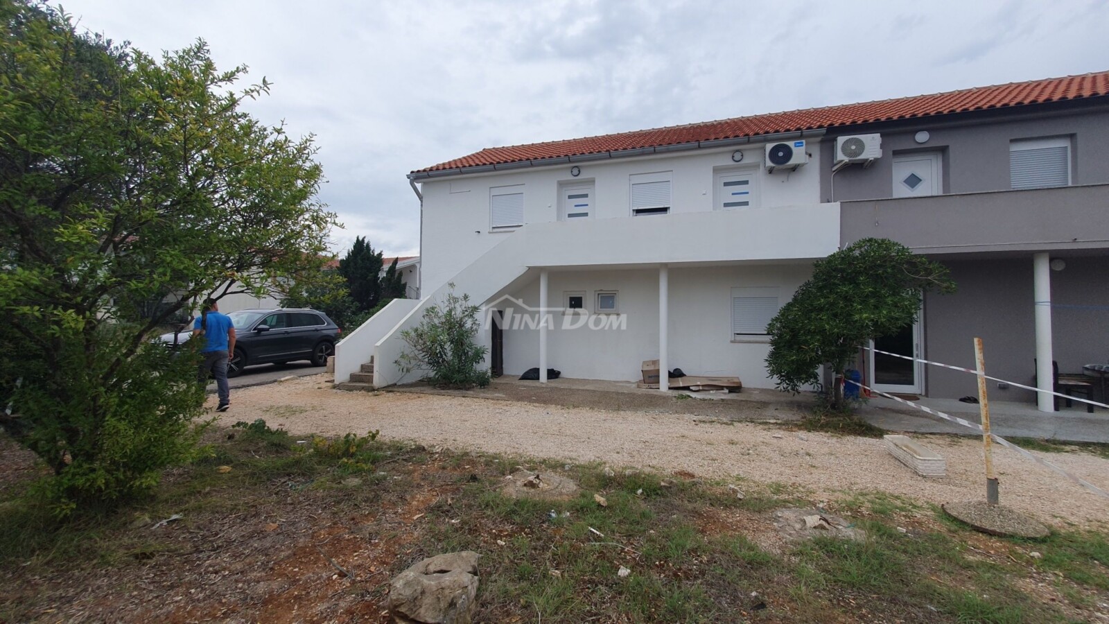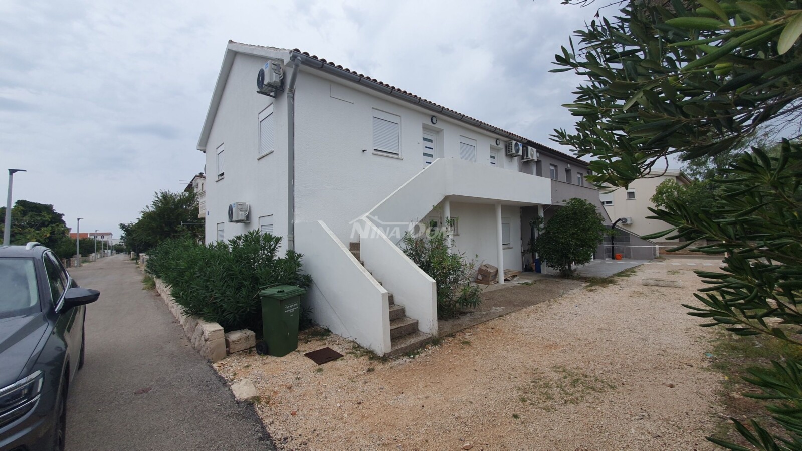 Semi-detached house with three residential units. Located on the south side of the island of Vir, 260 meters from the sea and the beach. Ground floor: covered terrace, hallway, bathroom, toilet, storage room, living room with kitchen and dining room, and two bedrooms. First floor: two apartments, each with a kitchen with living room, one bedroom, bathroom and balcony. Next to the house there is enough space for parking and a part of the garden for socializing. The property is connected to the city water supply and sewage system. It has been partially renovated (the bathrooms with toilets are completely new)